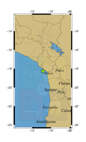 Sismo a 61 km al NO de Arica (PRELIMINAR)